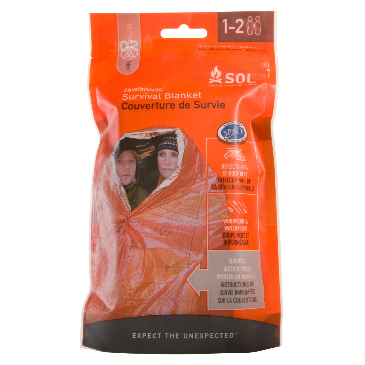 This is not your father’s reflective blanket! It’s 20% larger than standard blankets and has survival and first-aid instructions printed directly on the blanket. The bright orange exterior color is easy to spot and a universal distress color for rescue! It reflects up to 90% of radiated body heat, is easy to open and fold, quiet, and tear resistant.