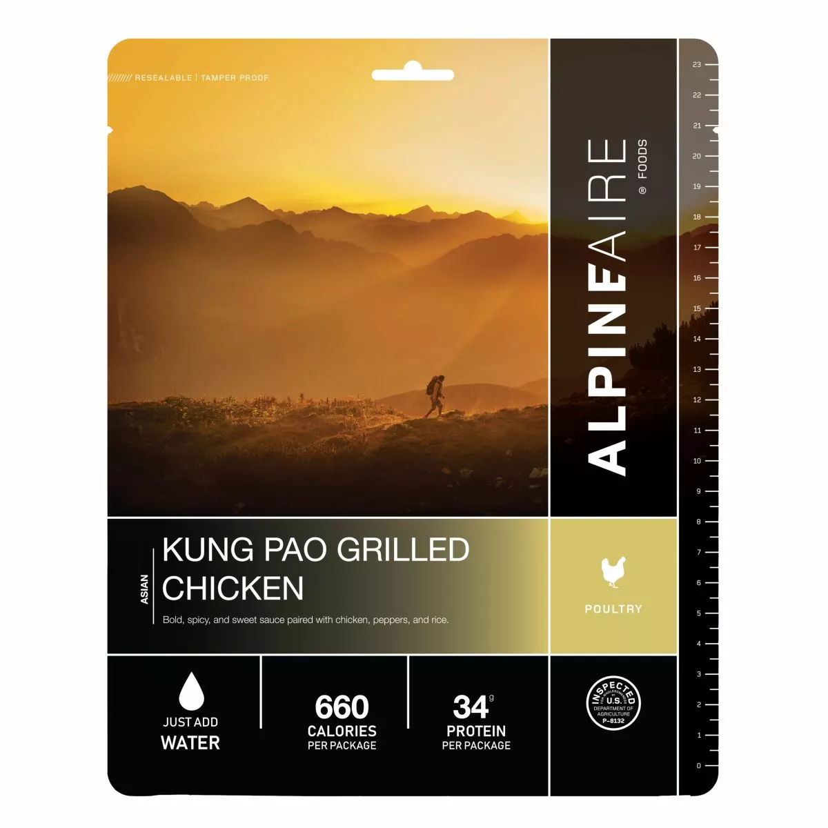 AlpineAire Foods Kung Pao Grilled Chicken: bold, spicy, and sweet sauce paired with chicken, peppers, and rice.
