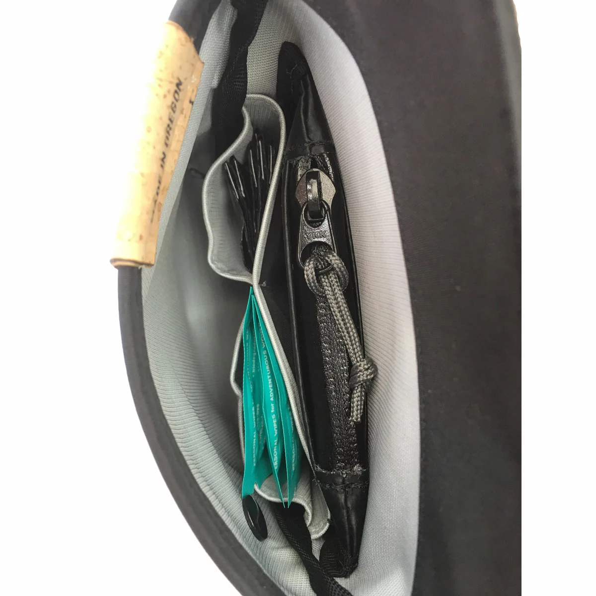 Holds filled biofilm disposal bags. Durable, coated, waterproof fabric and sealing zipper contain leaks and odors. Removable for easy emptying. Made by Animosa in Oregon (USA).