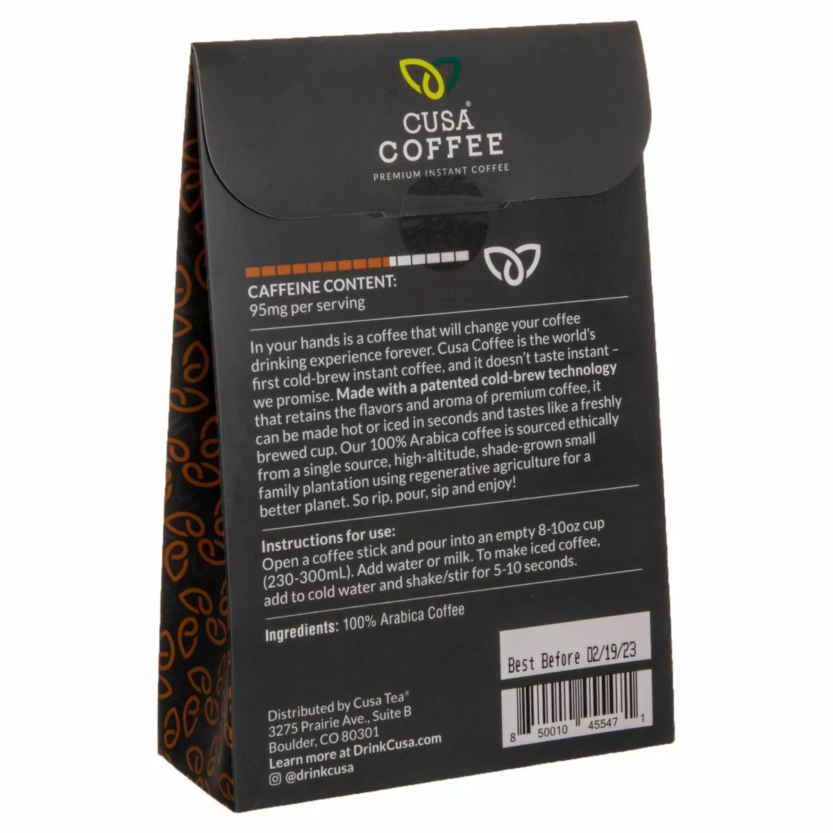 Cusa Coffee is made using 100% high elevation Arabica coffee beans. A coffee plantation that is high in elevation is beneficial because it enhances the flavor of the coffee beans. It’s also known to be higher quality and contain more rich, complex flavors. Cusa’s coffee plantation is also a fully regenerative agriculture plantation that is Rainforest Alliance Certified™.