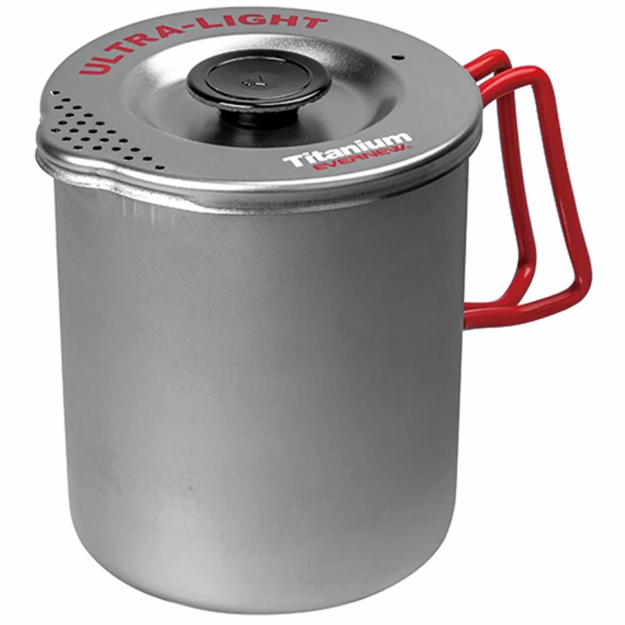 Versatile, ultralight titanium pot. Insulated handle with heat-resistant silicone. Built-in strainer lid. Holds 230g gas canister (sold separately). Mesh stuff sack included.