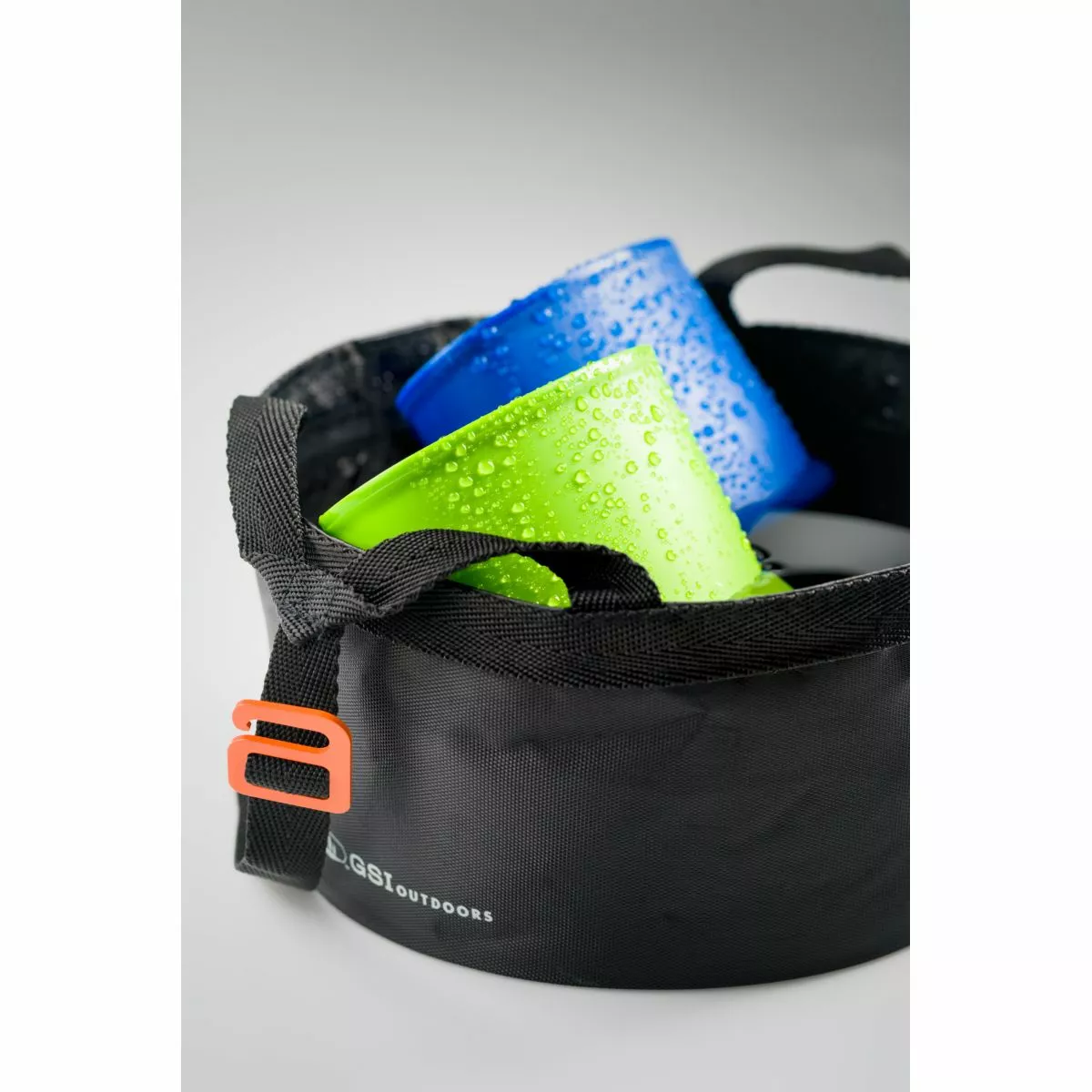 Rugged stuff sack holds set and doubles as a sink or wash basin.