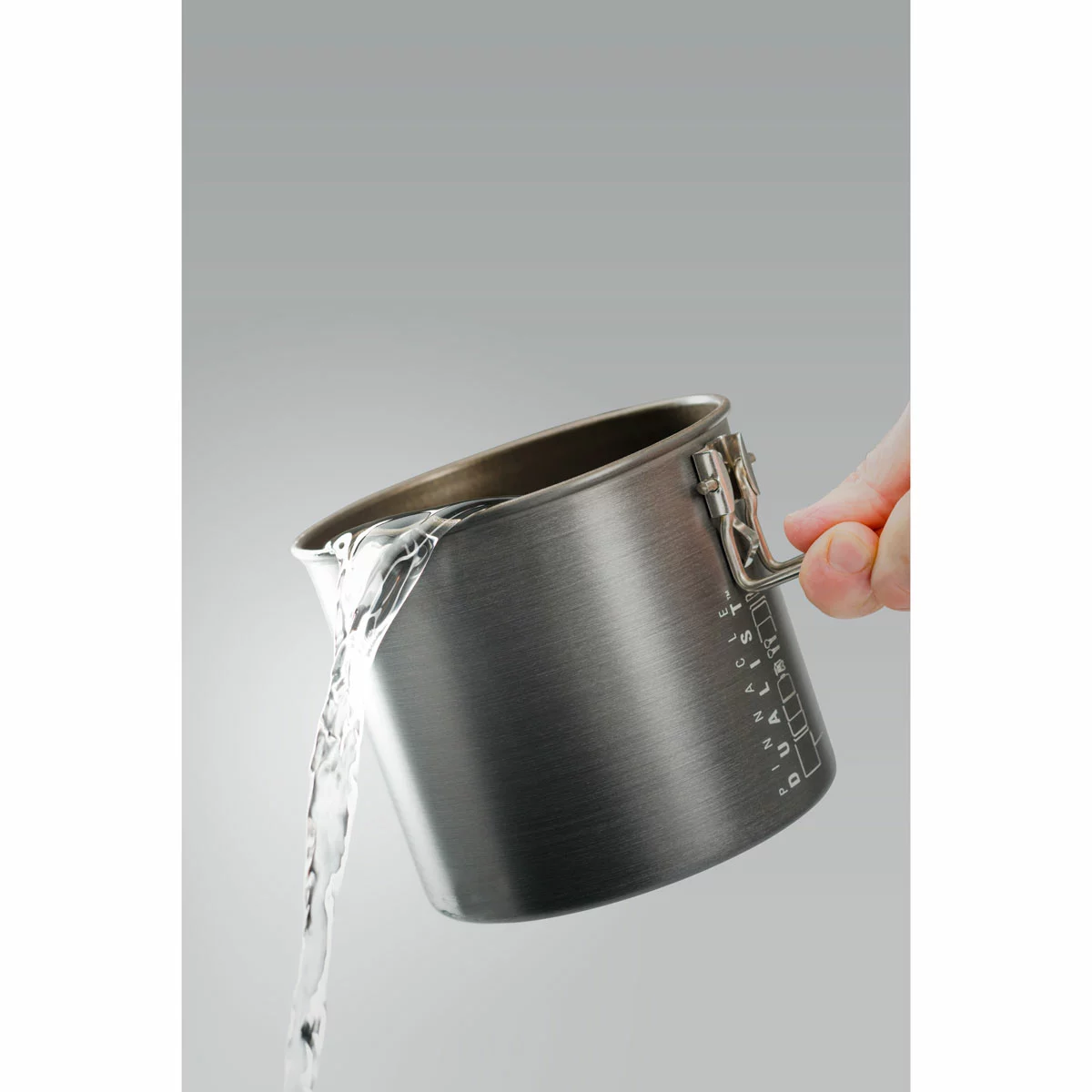 This efficient and ultralight camping cookware set integrates a secure, heat-resistant strainer lid, two Folding Foons, two insulated mugs with sip-it tops and nesting bowls, and a hard-anodized, Teflon with Radiance Technology non-stick-coated 1.9 qt (1.8 liter) pot. Waterproof storage bag also serves as sink in one compact, nested package with room to store a Pinnacle Canister Stove and 230 g fuel canister (both sold separately).