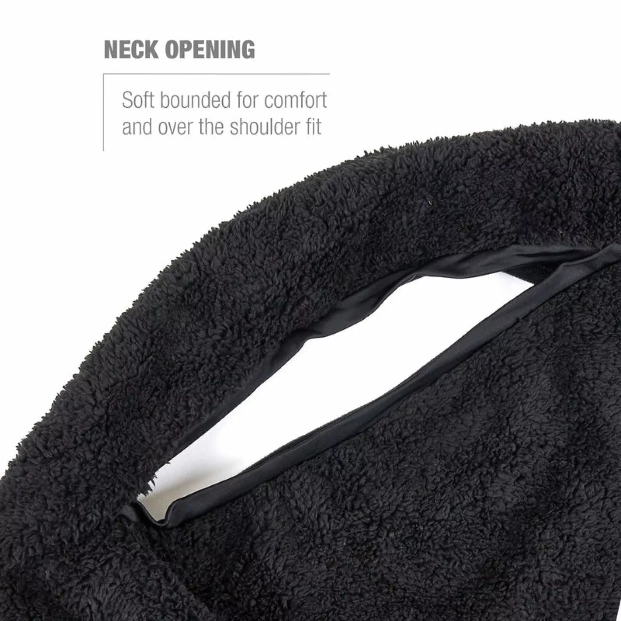 The Bloncho is contoured for sitting, and stays on while you sit or if you need to get up and move around.