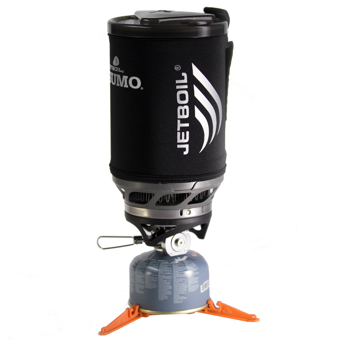 The Sumo from Jetboil is a group cooking system featuring a stove burner with simmer control, an insulated 1.8 liter cooking cup/pot, and a gas canister stabilizer. Feel the power of the Sumo with a larger pot and still under 3 minute boil time per liter of water.