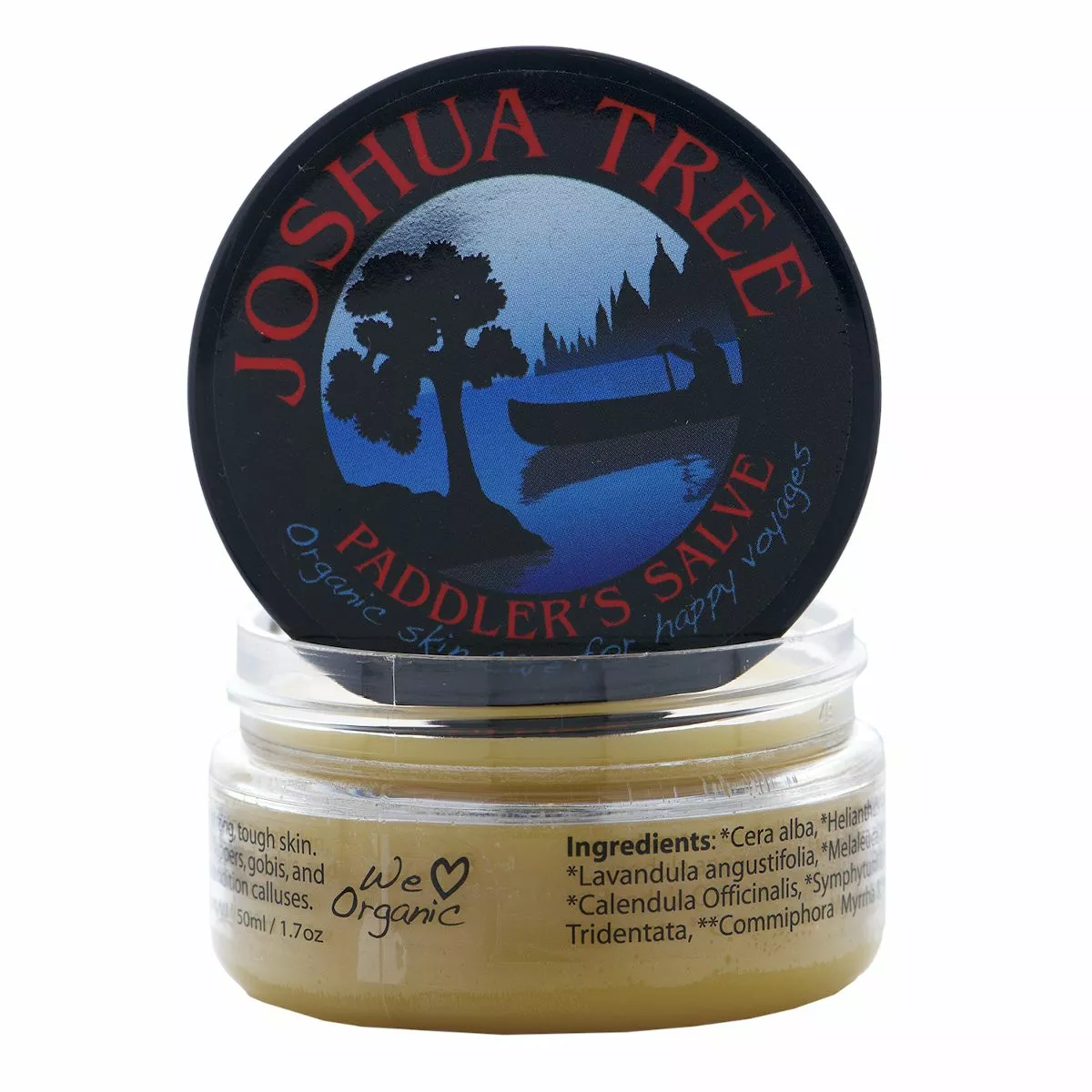 Joshua Tree Paddler’s Salve is an organic, skin-healer that is effective in treating blisters, chafing, and other skin damage resulting from long days on the water. Created using a blend of essential oils, freshly extracted from the finest organic herbs, JTree Salve moisturizes and promotes healing without softening calluses that the body produces for protection.