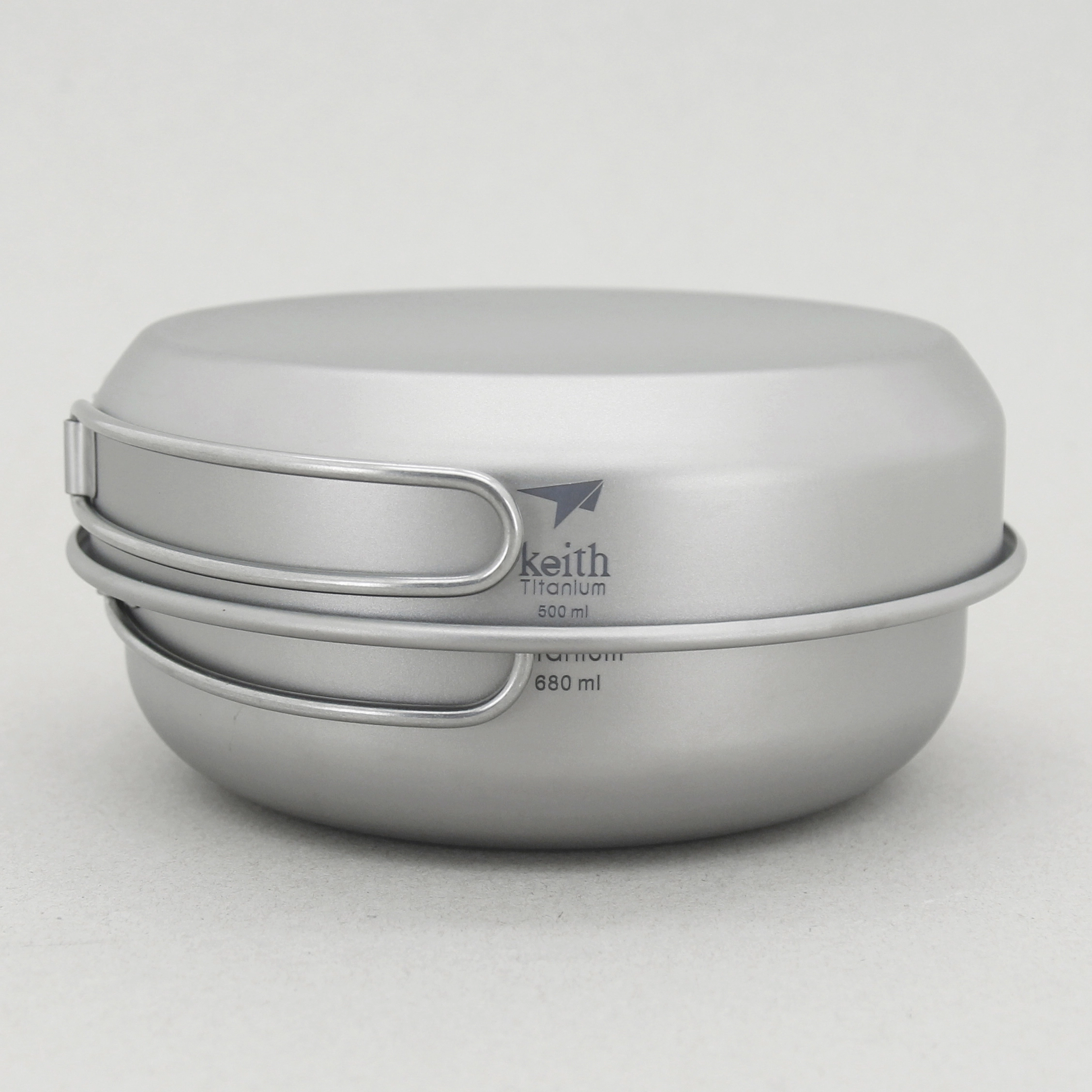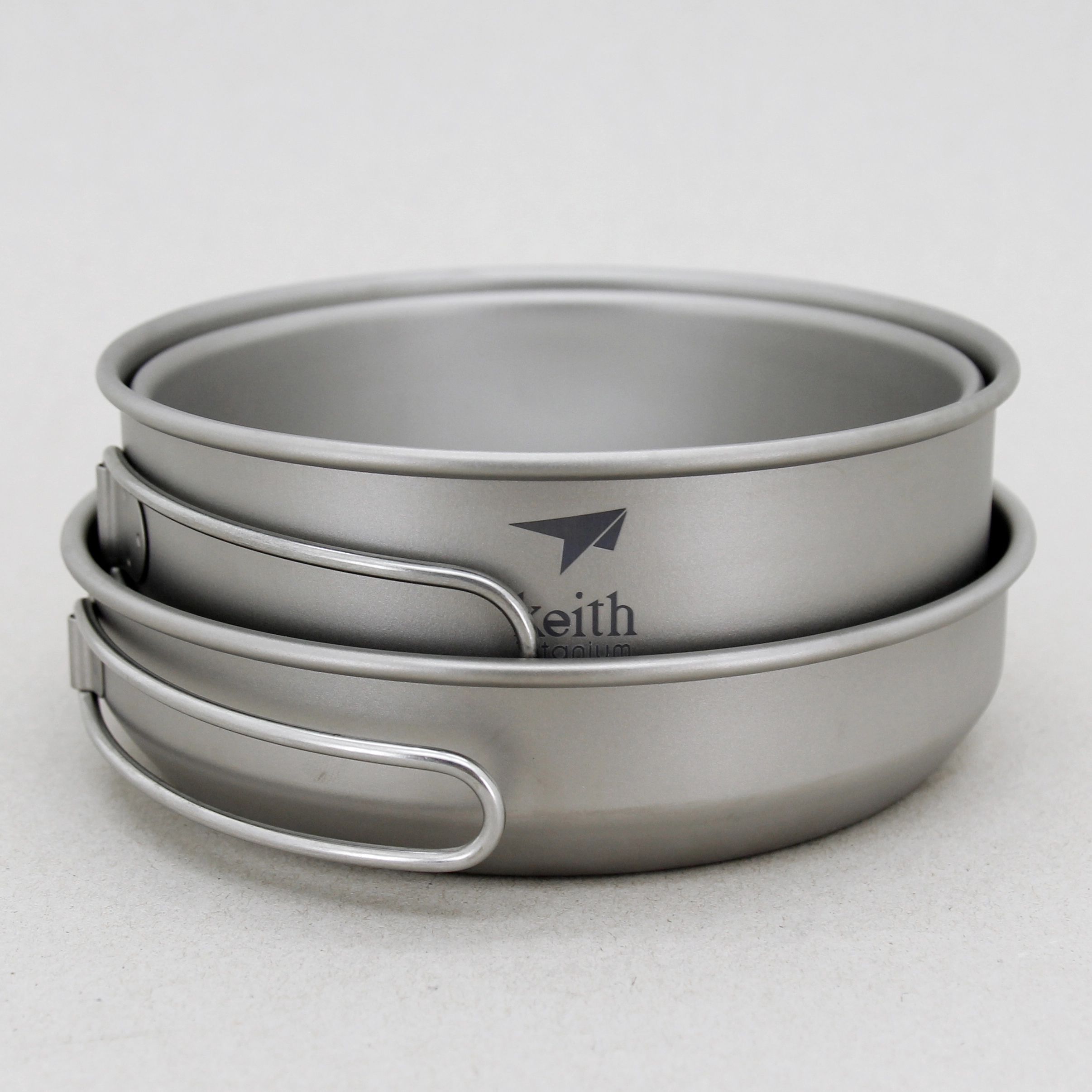 The 3-Piece Titanium Pot and Pan Set from Keith is a pure titanium nested camp kitchen set that’s ultralight.