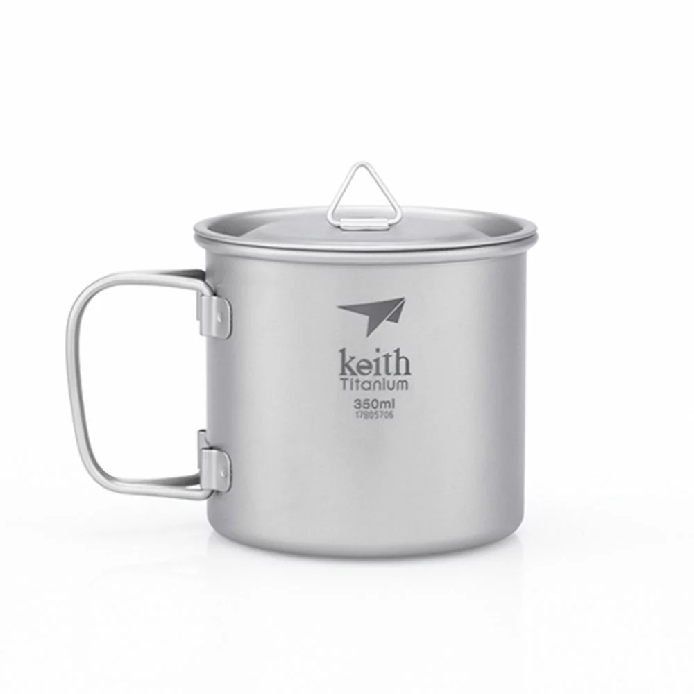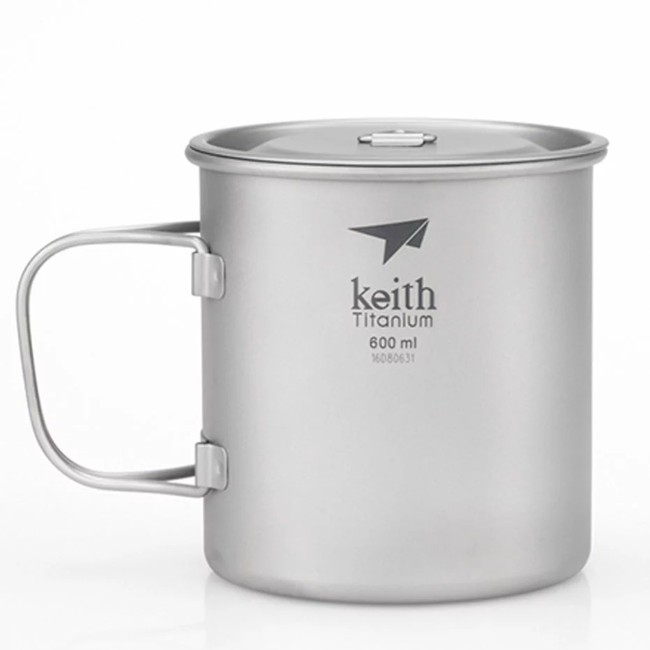 The Single-Wall Titanium Mug with Folding Handle and Lid from Keith is a minimalist’s dream with its durable ultralightweight titanium construction.
