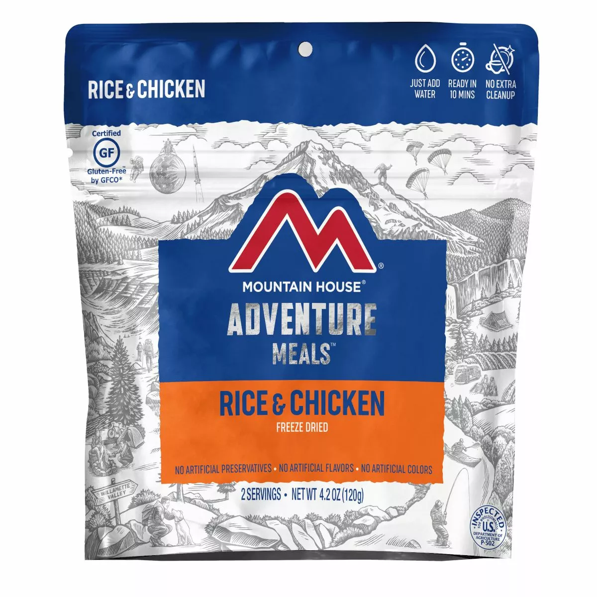 No matter the adventure, you need carbs and protein to keep you energized – and that’s exactly what you’ll get with Mountain House Rice and Chicken. Made with tender cooked chicken, zesty pimientos and hearty rice, this best-selling favorite has fueled explorers through power outages, snow storms, backpacking excursions, and even those nights where you just can’t seem to get off the couch to cook. Just add hot water and you’ll be ready to enjoy a delicious, satisfying meal in minutes.