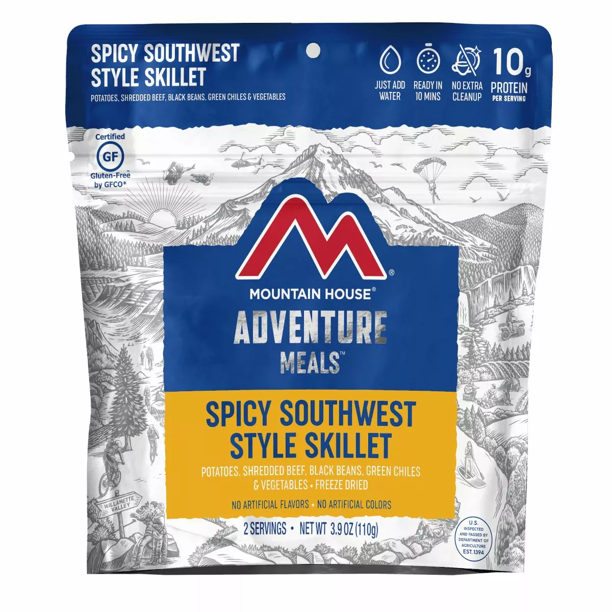 Whether you’re about to attempt El Cap or embark on a day hike through your favorite national park, you need two things out of your morning breakfast: fuel and flavor. Mountain House Spicy Southwest Breakfast Hash offers both, thanks to a blend of shredded beef, hash browns, black beans, veggies and the perfect amount of hot sauce. Enjoy right from the pouch, mix it up with some eggs or add to tortillas (both not included) for an extra-delicious start to your day.