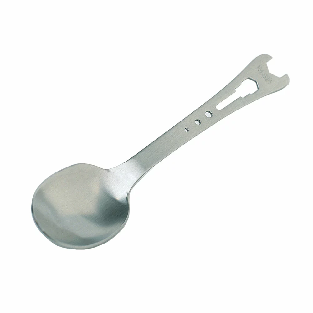 Possibly the greatest testament to the detail-oriented minds at MSR, this perfectly shaped Tool Spoon is a spoon on one end and a jet-and-cable tool that works with most MSR stoves on the other end. Does not remove jets from MSR Dragonfly of XKG stoves.