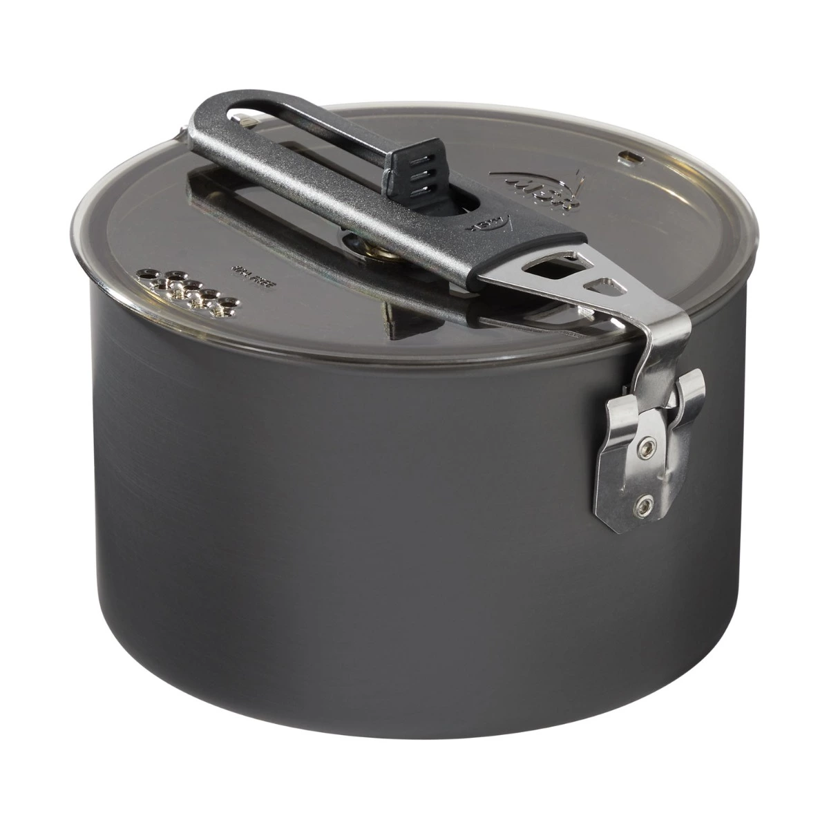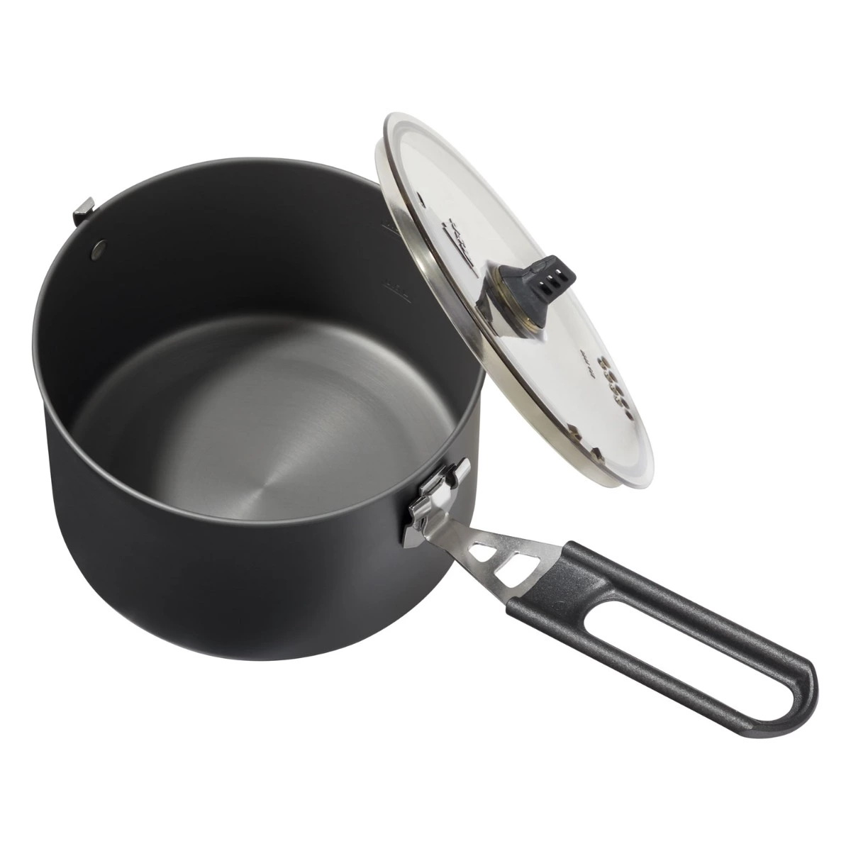 Light and strong thanks to its quality hard-anodized aluminum construction, the MSR Trail Lite 1.3 Liter backpacking pot is a solid foundation to the cook kits of solo travelers. Offering the heat distribution of aluminum, and scratch-resistant durability, this pot is great for water-boiling and one-pot meals. Its compact shape and folding/locking handle help the pot fit easily in smaller packs, so you can move quickly to cover the miles.