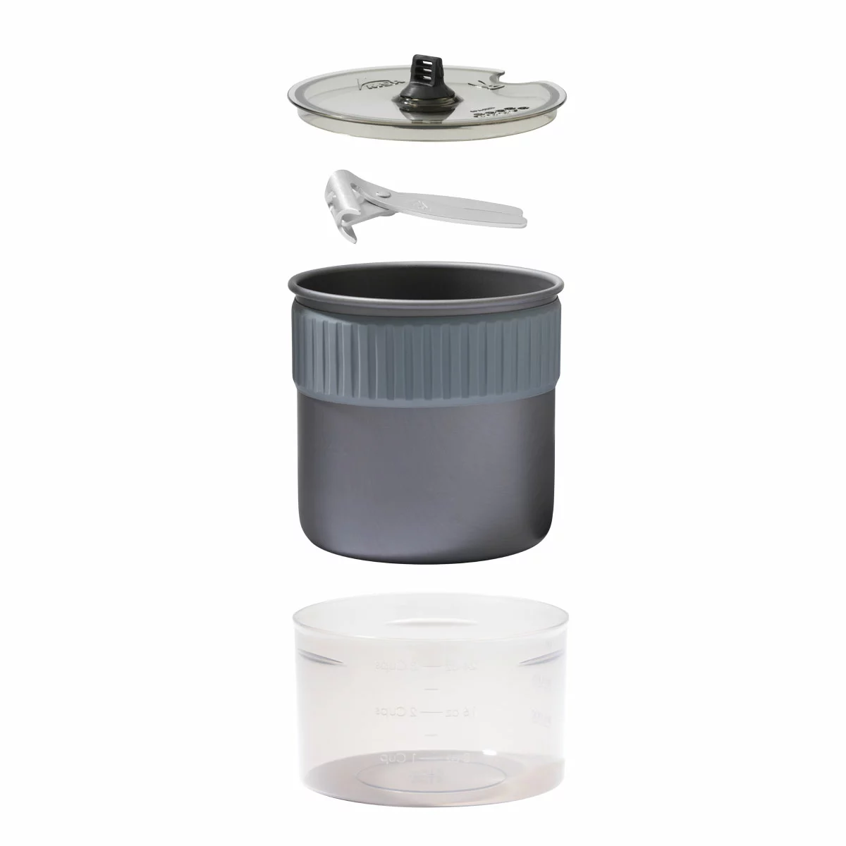 • Includes: 1.2 L hard-anodized aluminum pot, 28 oz. bowl*, clear lid* with straining ports, ultralight mini pot lifter, stuff sack. Room to nest PocketRocket 2 stove and 8 oz IsoPro™ fuel canister (both sold separately).