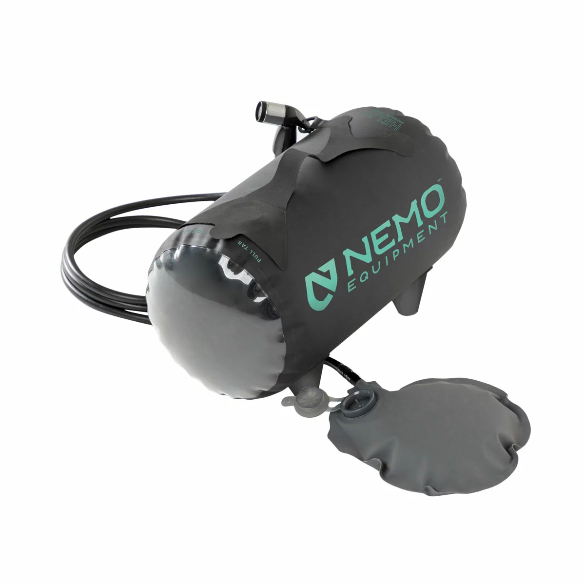 Refill the Helio anywhere, even without a hose. The 7-foot neoprene hose is long enough to hold it overhead for a shower, or to reach all angles of dirty gear, muddy paws, or salty wetsuits.