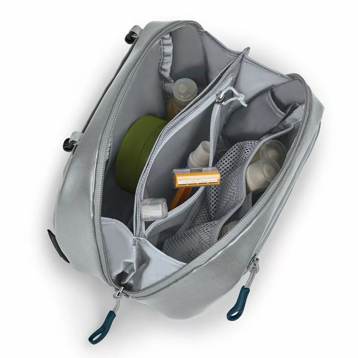 Osprey designed the Transporter Toiletry Kit Large for the times you need to bring everything but the bathroom sink. This oversized countertop travel kit is roomy enough to fit full-sized bottles and brushes. It has a zippered external pocket and 12 packing spaces for all your essentials. The TPU-coated polyester fabric is easy to clean and keeps spills inside. This kit is sustainably made from bluesign®-approved recycled materials with a PFC-free DWR treatment that sheds moisture.