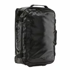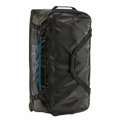 Tough and highly weather-resistant, Patagonia’s largest Black Hole Wheeled Duffel is a durable, smooth-rolling duffel that protects your gear from the hard knocks of faraway travel. Sized to hold everything you need for an extended trip, you access the main compartment via a zippered U-shaped lid, which has a pair of zippered mesh pockets on the underside to hold small items. A zippered exterior pocket provides a secure, easy-access place for your boarding pass, energy bar or paperback. The sturdy frame sheet protects the duffel from baggage-handler abuse and keeps your Black Hole upright, even when it’s loaded to the max. Oversized wheels deliver a smooth ride, whether you’re crossing the tarmac or traversing a cobblestone street. Carrying options include the main webbing handles (with snap closure), a two-position telescoping handle, and the two haul loops on either end. You can lash additional gear to the outside with the four corner-mounted daisy chains. Made from 900-denier 100% postconsumer recycled polyester ripstop with a TPU-film laminate and lined with 200-denier 100% recycled polyester with a polyurethane coating. Both fabrics have a DWR (durable water repellent) finish.