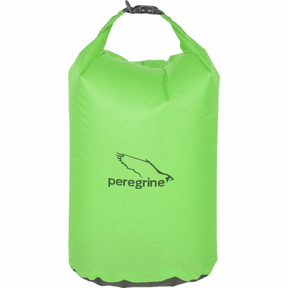 The Peregrine Ultralight Dry Sack is a cylinder shaped dry-sack; perfect for situations where water and rain is involved. 30D CORDURA® Ultralite fabric delivers a desirable combination of qualities: durable, compact, lightweight, and waterproof. The Hypalon® roll-top closure secures the bag shut and keeps the contents protected. Made with double waterproof treatment with a siliconized outside and a polyurethane coated inside. Taped and double stitched seams keep the bag watertight.