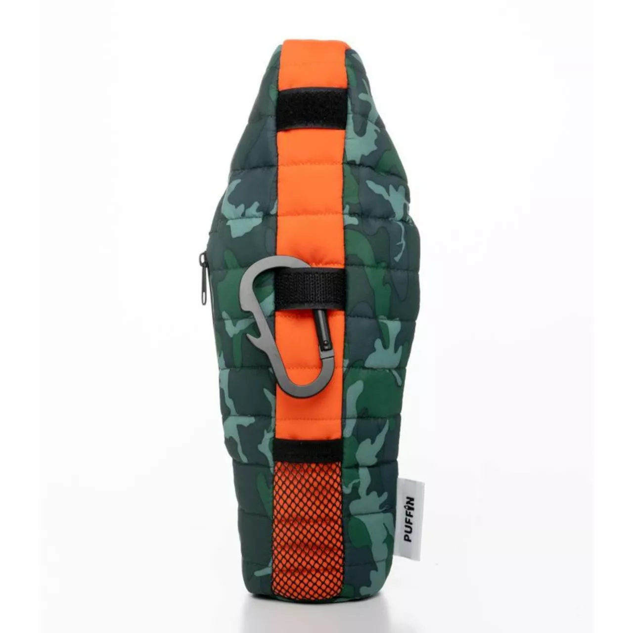 Equipped with interior insulated liner, carabiner with bottle opener, and utility pouch. This Puffin is designed specifically for longneck and steinie bottles (your standard 12oz bottles).