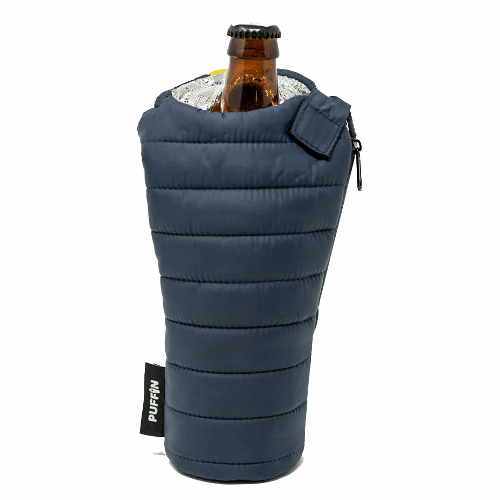 Foam bottle holders are boring. Puffin designed this bottle cooler to be extremely cool and practical. The Puffin Sleeping Bag beer koozie will be your bottle’s best friend! These little babies are beautifully made with great detailing.