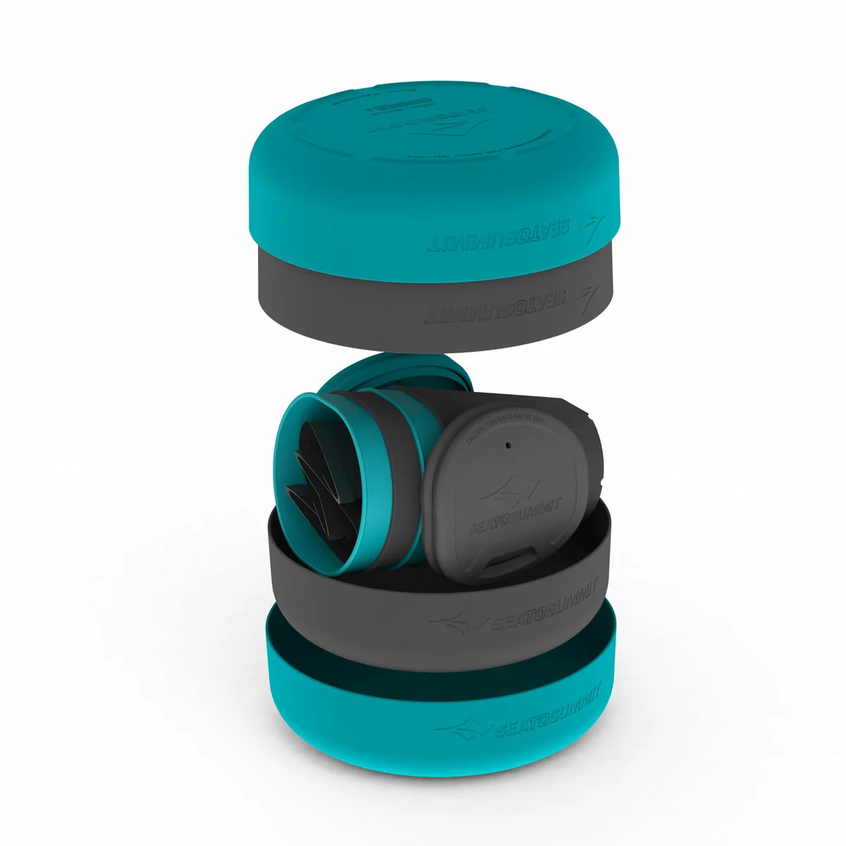 The DeltaLight Camp Set 4.4 is Sea to Summit’s four-person lightweight and compact camp dinnerware set. All DeltaLight dinnerware pieces have graded volume measurements stamped on the interior sidewalls. Set includes 4 DeltaLight Bowls (2 nesting pairs), and 4 DeltaLight Insul Mugs with lids. Also includes formed storage pouch.