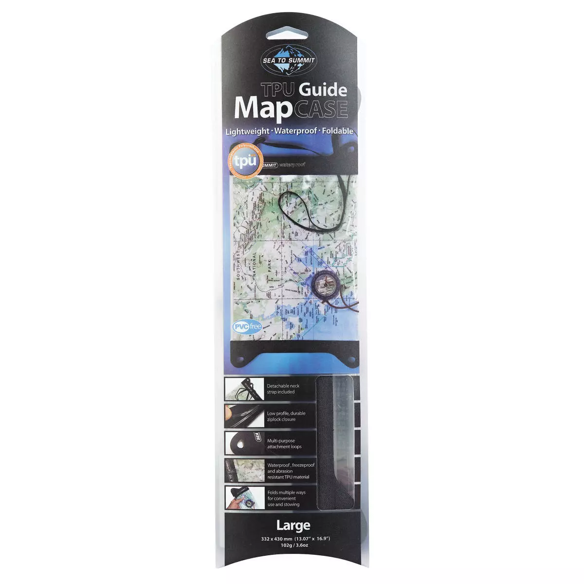 The TPU Waterproof Guide Map Case from Sea To Summit features TPU (thermoplastic polyurethane) with welded construction and a super-strong Ziploc® closure. It’s resistant to UV and extreme cold. Designed with a detachable neck strap and corner anchor points for versatility.
