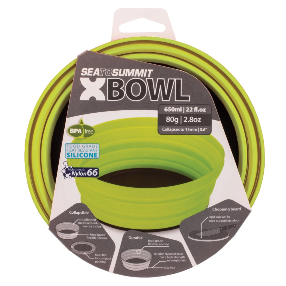 The Sea to Summit X-Bowl is made from flexible, food grade silicone that collapses easily to slide into any pack with ease. The nylon base may be used as a cutting board when the X-Bowl is flipped upside down, making it a multi-purpose and functional piece of dinnerware. In addition, X-Series™ dinnerware nests neatly with the X-Pots to create a comprehensive space saving kit.