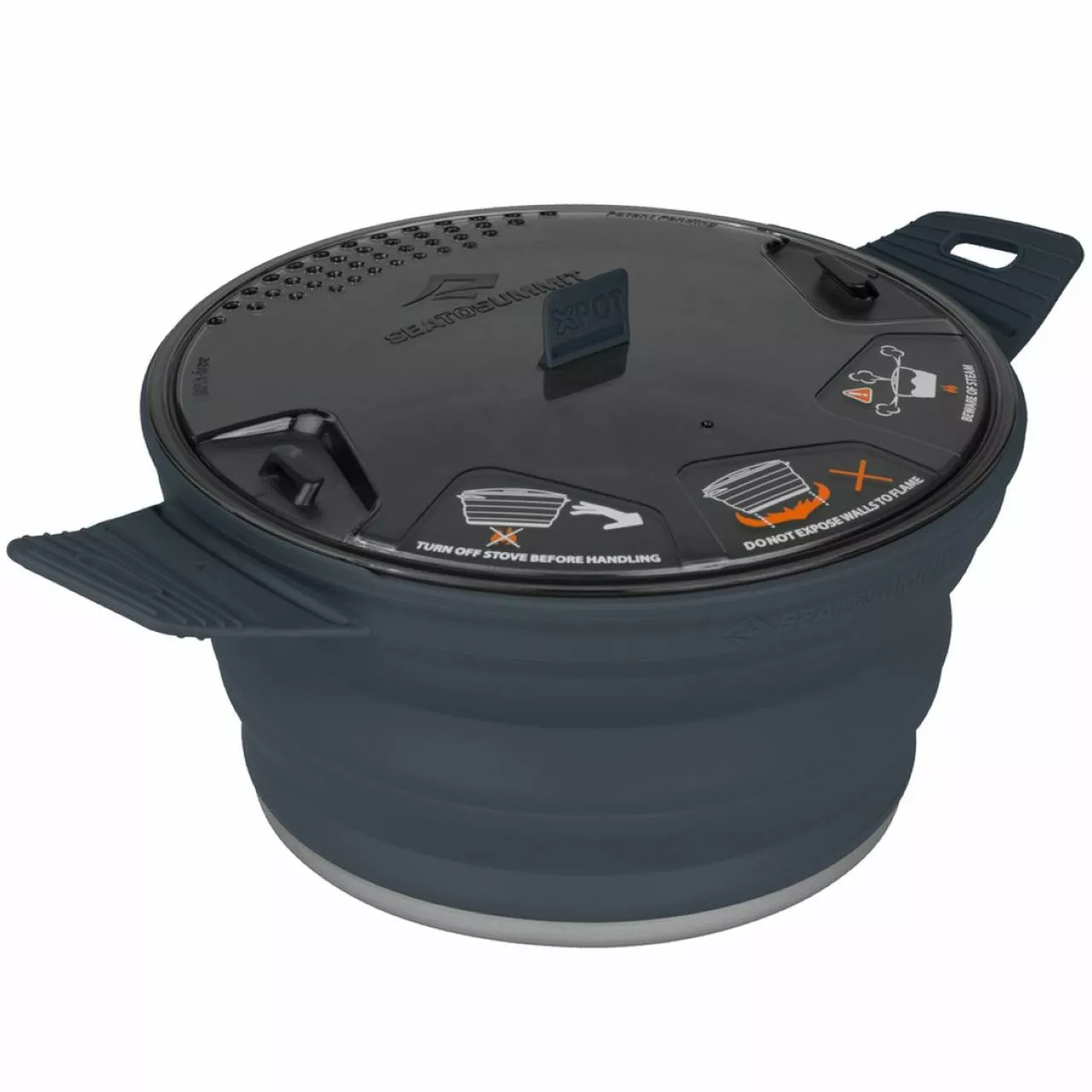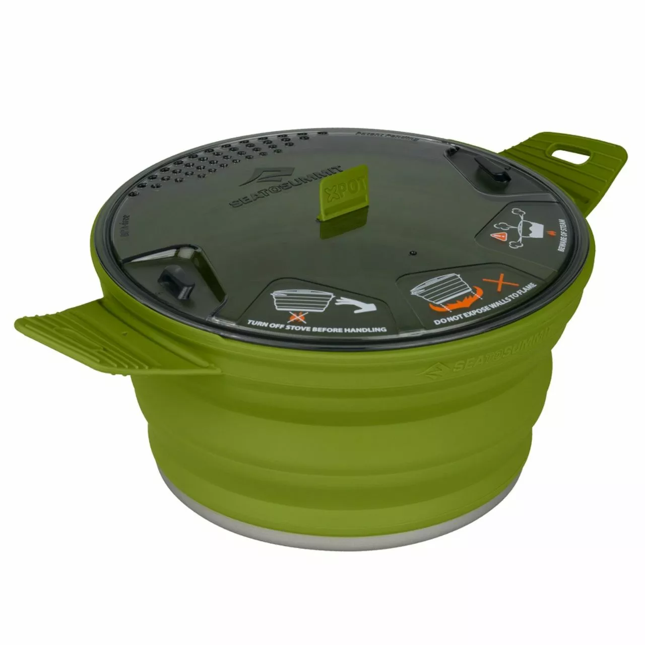 Sea to Summit has created a truly innovative solution to bulky cooking pots: the X-Pot collapses flat to disappear into your pack. It has a hard-anodized aluminum base and silicone sidewalls that fold down and nest with other X-series products. Silicone is one of the safest cooking materials out there; it is BPA-free, won’t leach tastes, odors, or chemicals, and can handle outrageous extremes in temperature. The hard anodized aluminum base offers a fast boil time and the stainless steel ring embedded in the rim turns the silicone walls into an exceptionally rigid structure for easy lifting and stirring. The X-Pot is an awesome choice for backpacking, mountaineering, cycle trips, or any other activity where space is paramount.