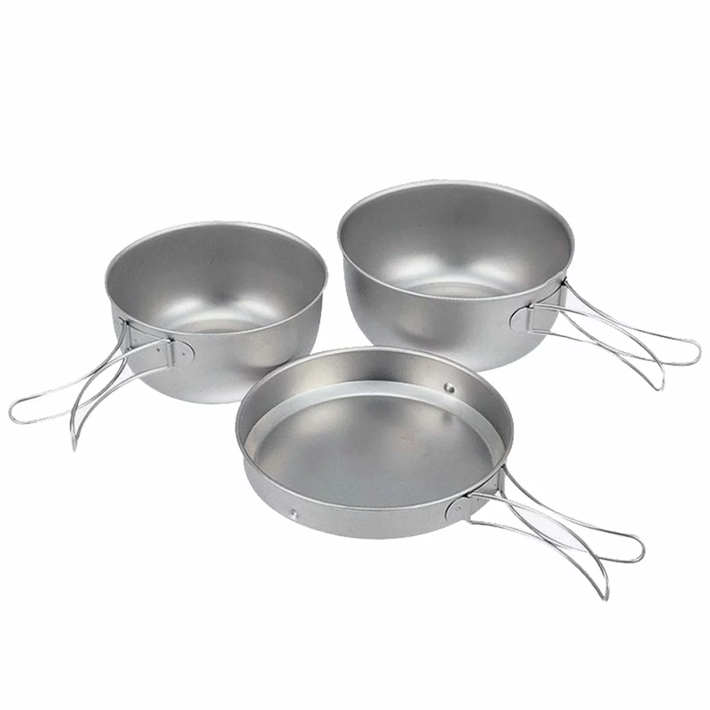 The Snow Peak 3 Piece Titanium Cookset is the perfect cookset for the minimalist gourmet backpacker. With two pots and a frying pan this set still only weighs just over 7 oz. Each piece has a fold out handle that makes storage easy. The smaller pot is big enough to carry a small canister of fuel inside. Overall this is a nice little cookset with the quality expected from Snow Peak.