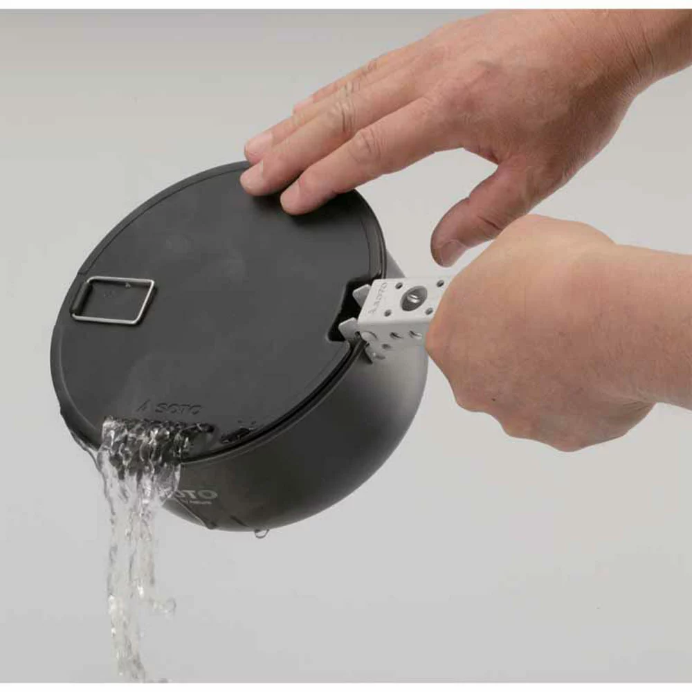 The Soto Outdoors Navigator is a versatile cook set that can be used for groups or solo trips, with a deep anodizing treatment for long-lasting non-stick properties.