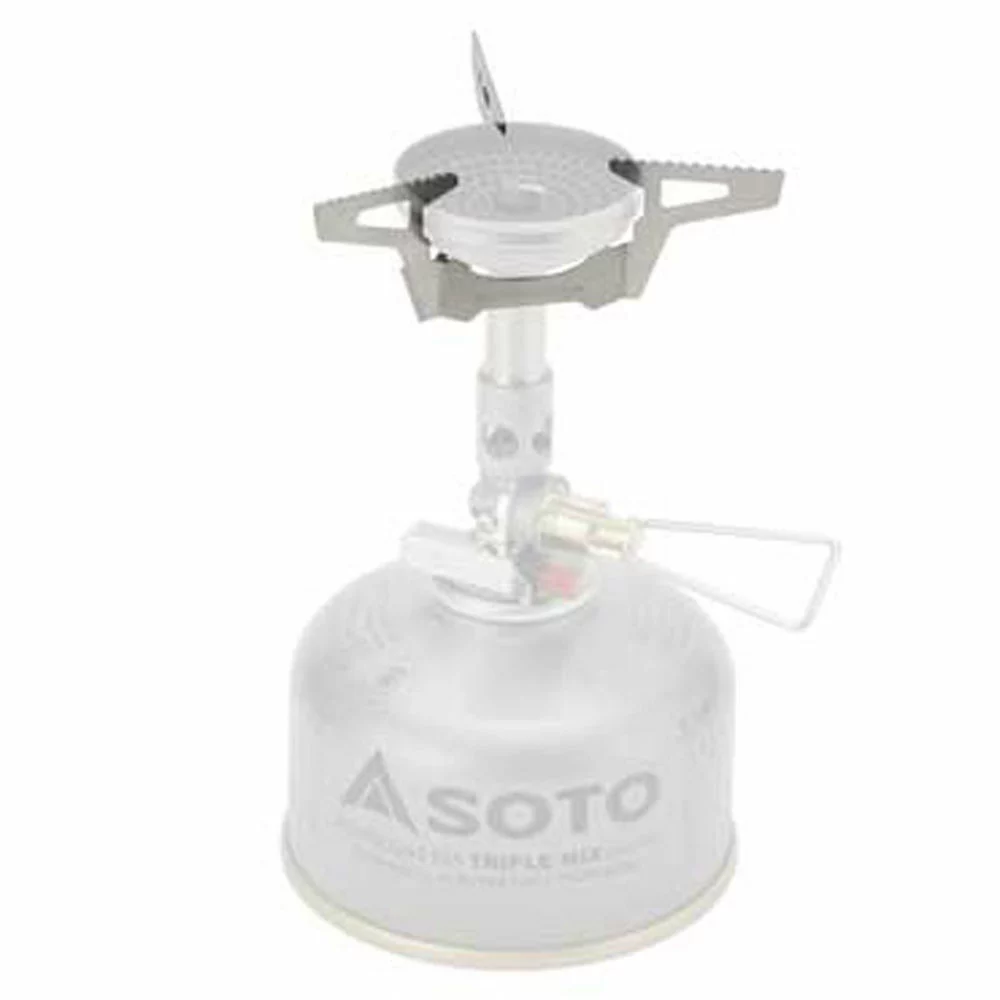Three-prong pot support provides stability. User-friendly for one person. Compatible with the Soto WindMaster stove (sold separately).