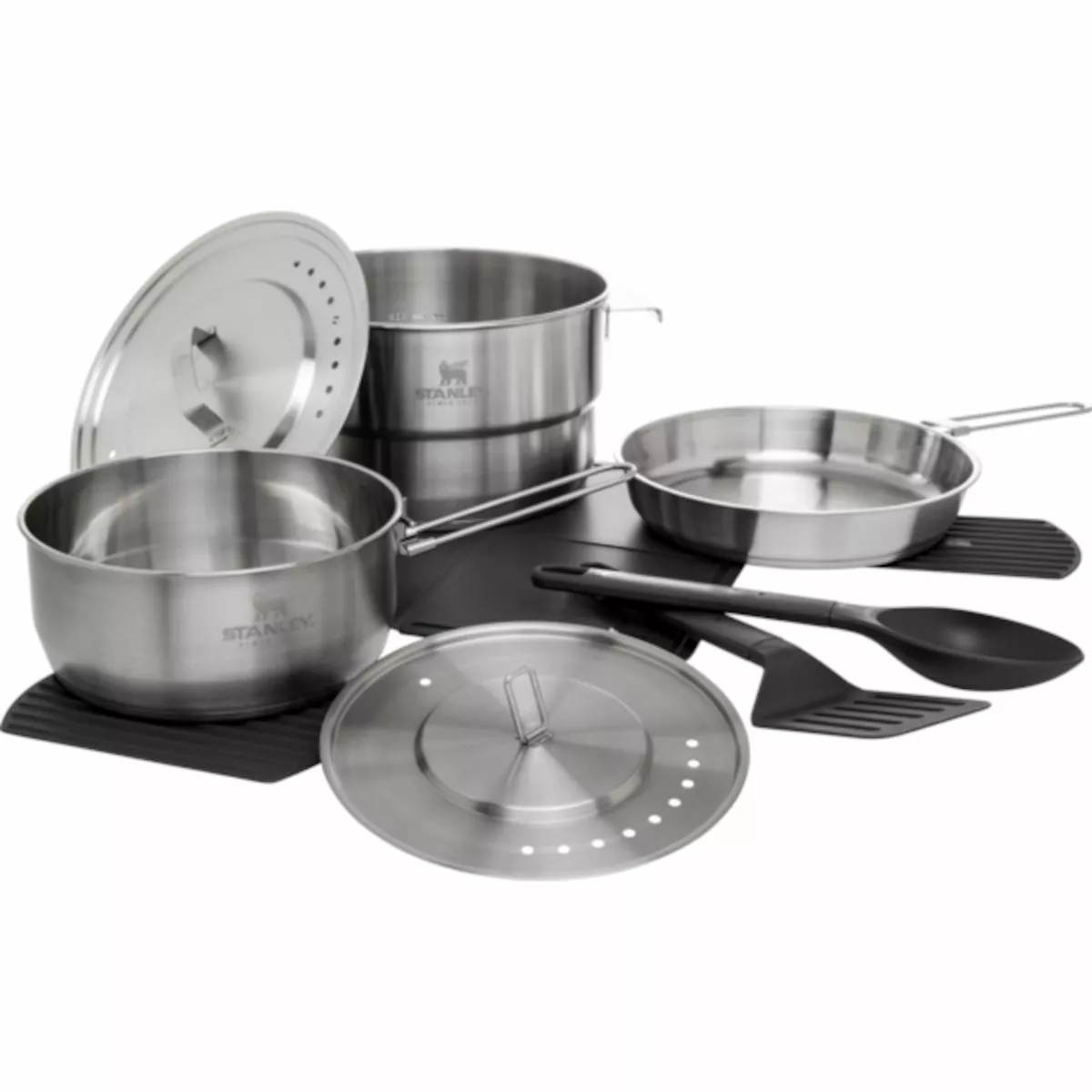 You’ve got 5 friends sitting around the campfire. It’s dinner time. They’re hungry. What do you do? Quick, grab yourself a cutting board, 2 stainless steel pots, a base pan, two silicone trivet pot holders, and a deluxe spatula and serving spoon, AKA the Even-Heat Camp Pro Cook Set. The best part? When dinner’s done, clean-up is easy thanks to the stainless steel heat distribution, and it nests to make packing up a cinch. Now, get to work, people are hungry.