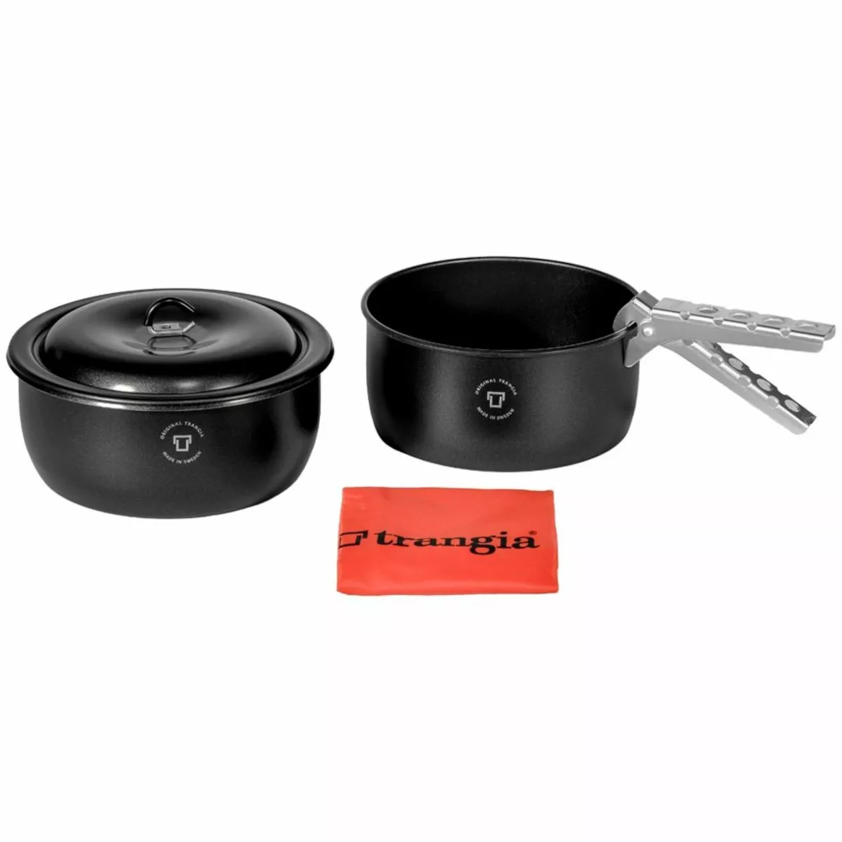 Designed for use with many brands of gas stoves. Tundra pots and pans have milled bases so they won’t slide off the stove. Non-stick surface for easy cleaning. Includes 1.75 L and 1.5 L pots, lid that fits both, pot gripper and carry bag. Set nests together into a compact 8″ x 3.75″ size.