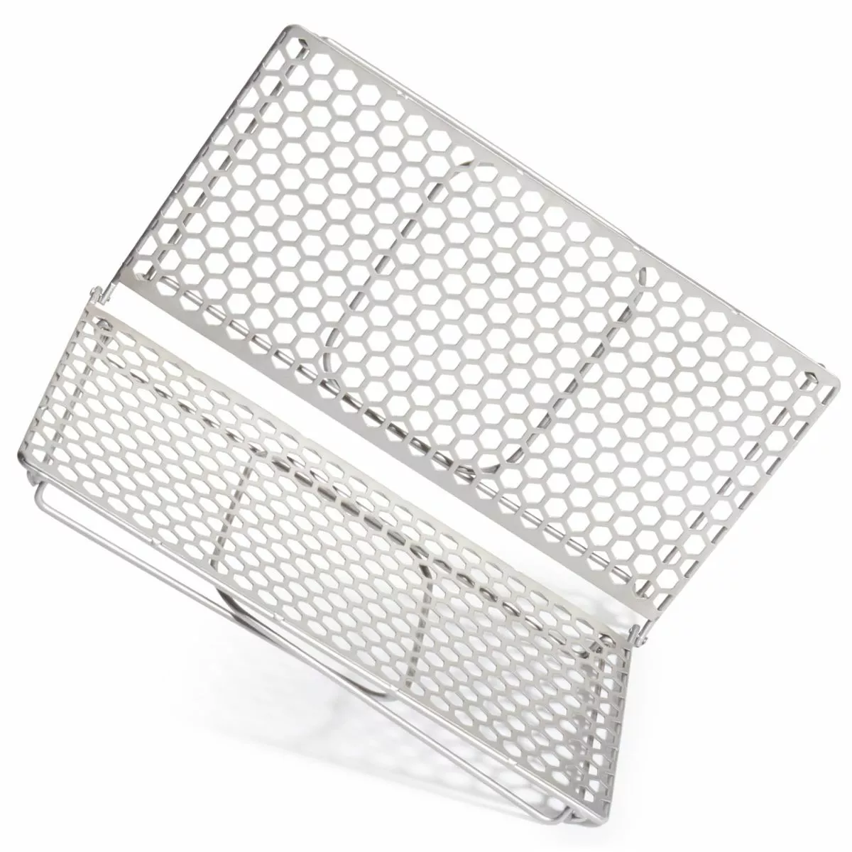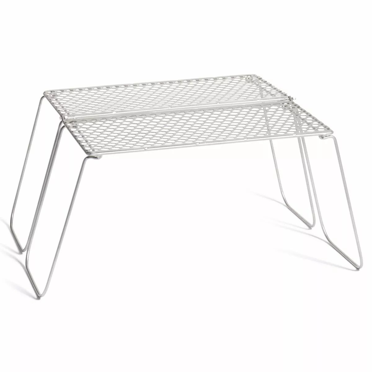 Grill up delicious food in the backcountry effortlessly with the BiFold Grill. Its fold-flat design and all titanium construction makes packing and carrying it easy and lightweight. Simply unfold the stove and legs to place over any fire. With a 60+ square inch cooking surface, the BiFold Grill can handle fish fillets, vegetables, and steaks or simply place your pot or pan on top for over-the-fire cooking. The included nylon protective case keeps it and the rest of your gear clean while not in use.