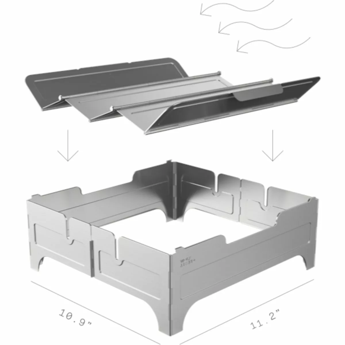 Airflow direction has been carefully engineered to create an efficient and clean burn of charcoal or wood in strong-to-light wind conditions. Wind shielding provided by the frame ensures you light and keep your fires hassle-free.